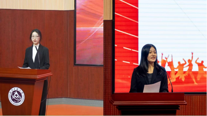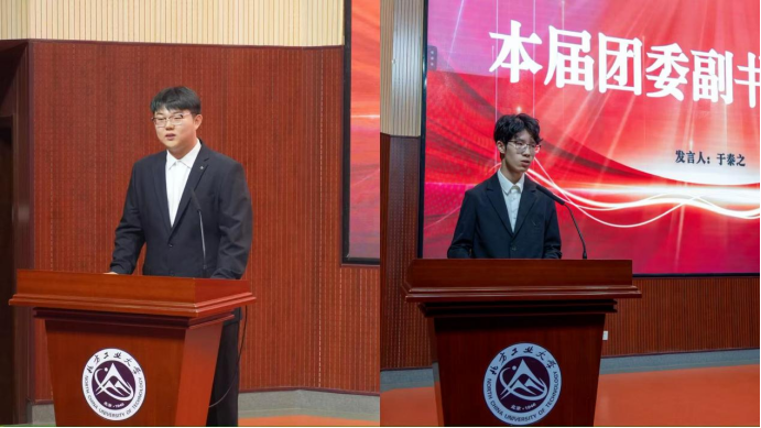 新一届学生会代表杜雨锡作表态发言。他表示,将带领新一届学生会成员传承上届优良作风,以“求真务实、开拓创新”的态度,聚焦同学们的需求,切实增强团学组织的凝聚力与影响力。新一届团委副书记于泰之同学发言,他承诺将以更高标准推进团务工作,加强团员思想教育,引导理学院青年学子在学术科研与社会实践中展现青春担当。