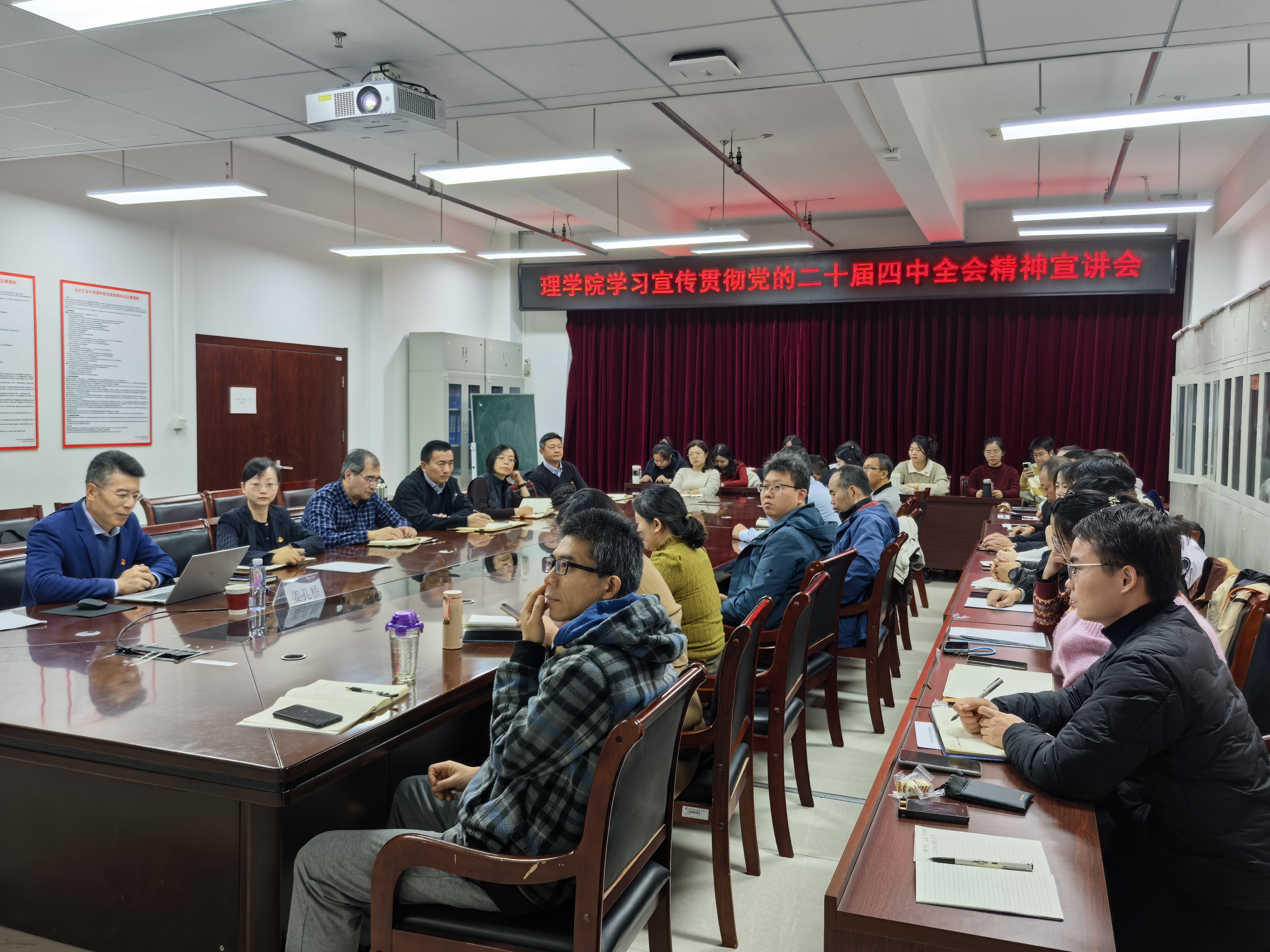 11月21日上午,理学院在博远楼805举行学习贯彻党的二十届四中全会精神报告会,校党委副书记姜孔桥作理论宣讲。