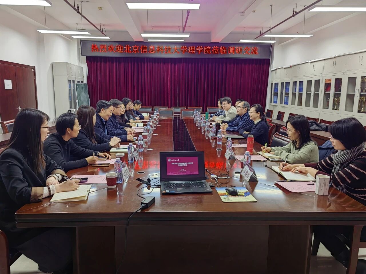 李万福书记对学院的热情接待表示感谢,对其取得的丰硕成果表示赞赏。他介绍了北京信息科技大学的历史沿革、校区布局、办学规模和学科专业等情况,着重介绍了理学院当前的发展现状、师资队伍结构以及人才培养成效,并就发展中遇到的瓶颈问题进行了交流探讨。王海璐副书记、闻小永、孙妍副院长和华冬英、周平、刘亚轻等与会教师针对学生就业和升学率、学科建设、国家自然科学基金申报、教学成果奖申报等进入了深入探讨,学院参会教师给予了全面解答。