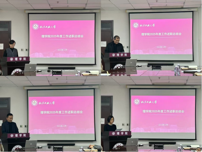 杨嵩松代表学院党委做学院年度工作总结报告。报告指出,2025年在学校党委的正确领导下,理学院在党建引领事业发展、公共课教学与人才培养、高质量充分实习与就业、学科交叉融合与人才引进、“三全育人”与学科竞赛等领域取得了一些成绩,顺利完成示范巡察工作。同时,报告也客观地指出了当前学院面临的深层挑战并提出下一步工作思路。随后班子成员杨嵩松、李冱岸、贺映勇、李红梅围绕德、能、勤、绩、廉逐一进行个人年度工作述职。