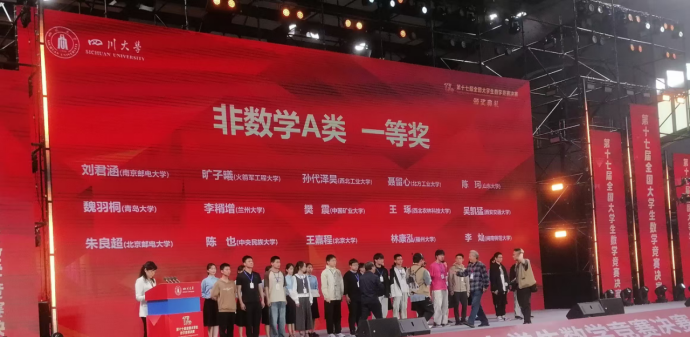 4月19日,第十七届全国大学生数学竞赛全国总决赛在四川大学圆满落幕。我校两名同学入围决赛,分获非数学类A组一等奖、三等奖。这也是我校学生首次在决赛中荣获一等奖。
