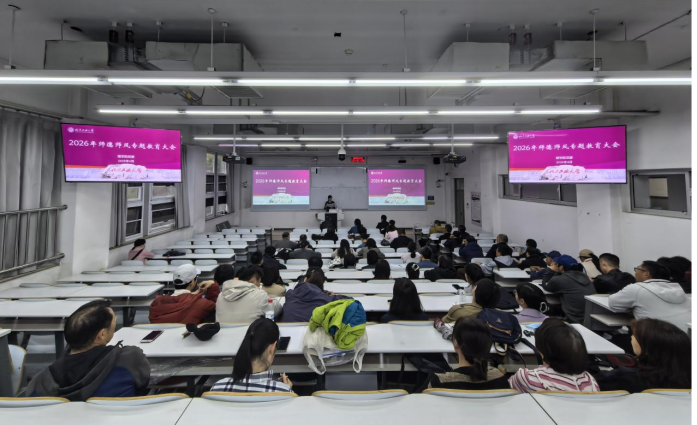 4月21日,为深入贯彻落实教育部关于新时代师德师风建设的最新部署要求,持续强化教师思想政治素质和职业道德水平,理学院党委在瀚学楼0208召开2026年师德师风专题教育培训会。学院全体教师参加会议,会议由学院党委书记杨嵩松主持。